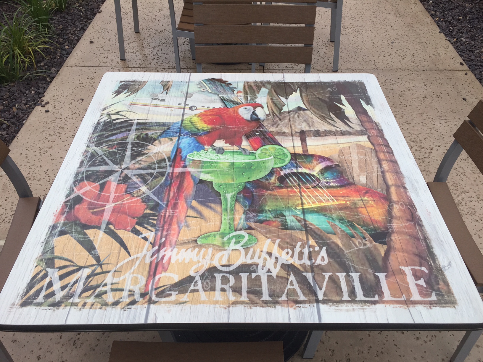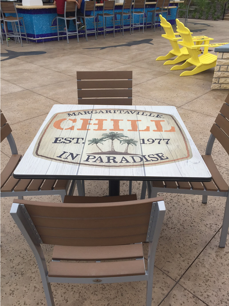 Table Designs of Odessa Florida created these beautiful table tops using AAM's digitally printed Carbon Zero compact laminate. The tops are 3/4" thick with black core.