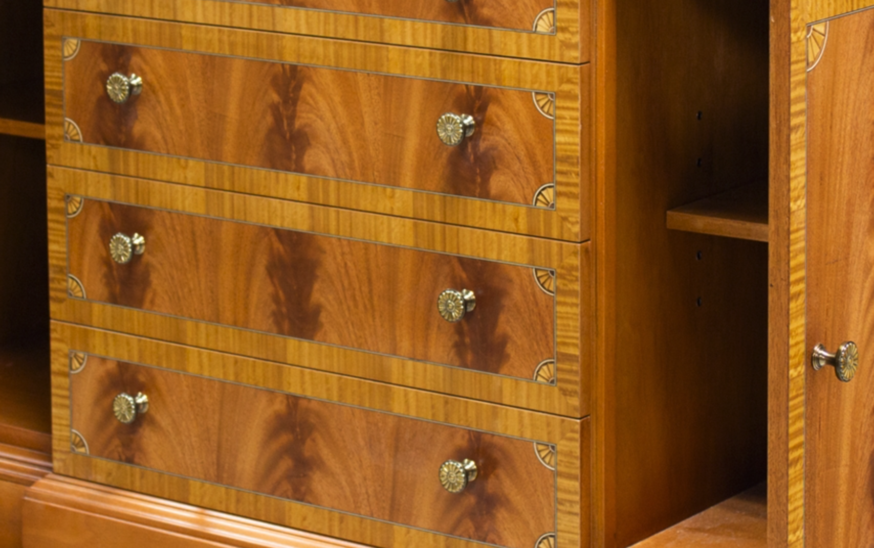 A1 Artisan Face Veneers are available from our wide range of natural domestic and exotic species. Additionally, our A1 team has a combined experience pf over 140 years of inlay work. Today we utilize the very latest in Laser technologies, but the final steps are always bu artisans and thioer experienced hands! Inlays for furniture components and traditional wall panels.